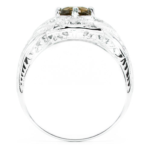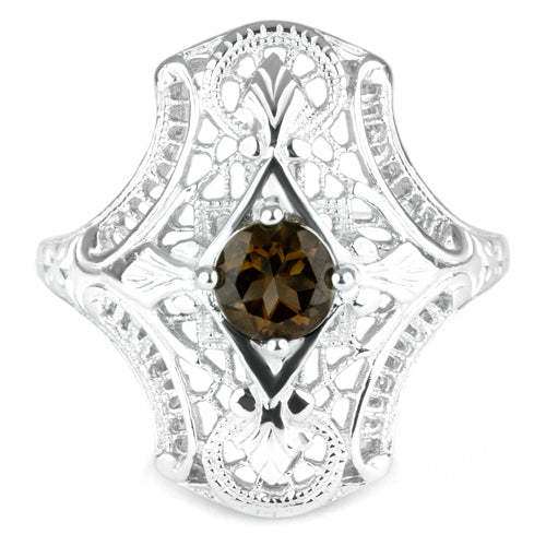SMOKY QUARTZ STERLING SILVER VINTAGE STYLE COCKTAIL RING ART DECO FILIGREE GEM