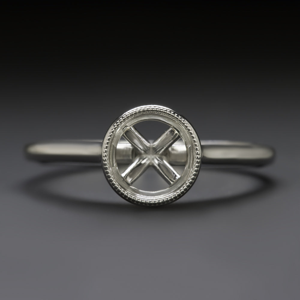 SOLITAIRE BEZEL RING SETTING 14k GOLD ENGAGEMENT MILGRAIN CATHEDRAL ROUND MOUNT