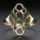 This vintag 10k yellow gold cocktail ring has an elegant design with fan shape cutouts and engraved texture that catches the light beautifully.