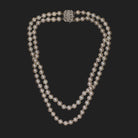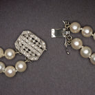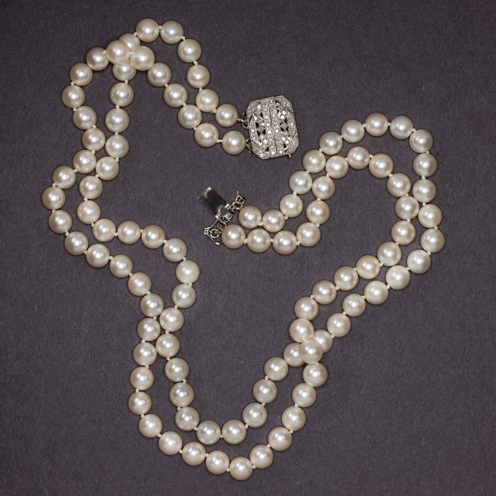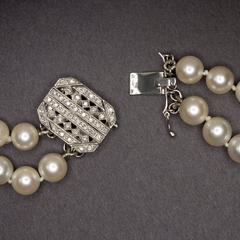VINTAGE 8mm SALTWATER AKOYA PEARL DIAMOND NECKLACE DOUBLE STRAND 14k WHITE GOLD