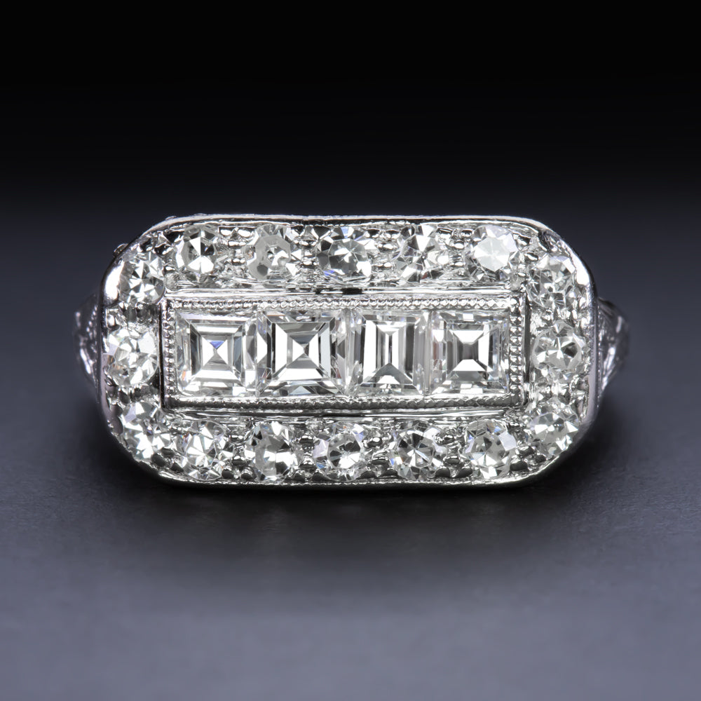 VINTAGE DIAMOND COCKTAIL RING PLATINUM CARRE CUT HALO BAND NATURAL RETRO ESTATE