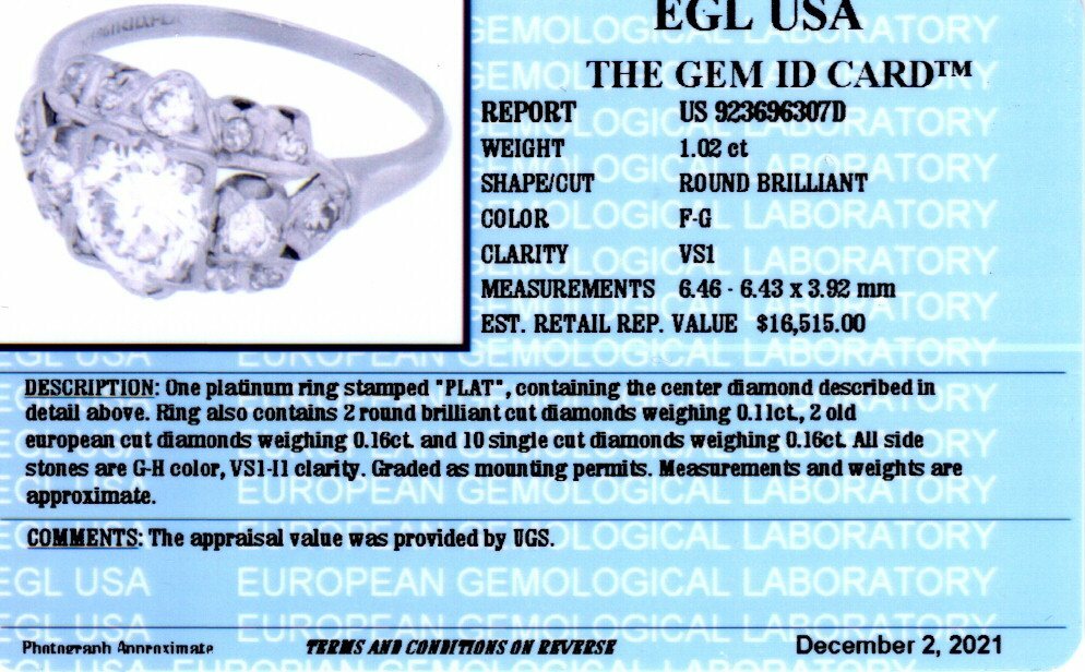 VINTAGE DIAMOND PLATINUM COCKTAIL RING CERTIFIED F-G VS1 1.45ct RETRO ESTATE 1ct
