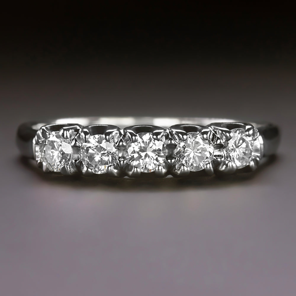 VINTAGE DIAMOND WEDDING RING PALLADIUM STACKING BAND 0.45ct 5 STONE ROUND CUT