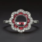 VINTAGE STYLE DIAMOND RUBY ROUND HALO ENGAGEMENT RING SETTING WHITE GOLD 6MM