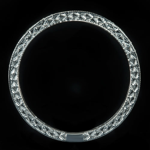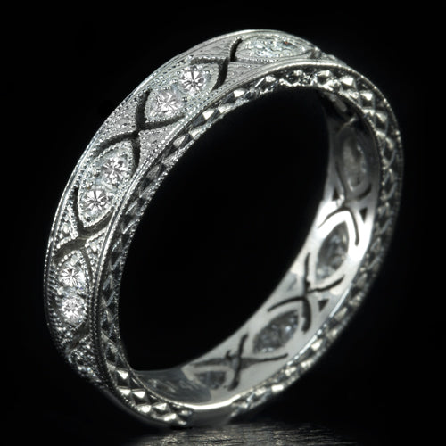 VINTAGE STYLE ART DECO ROUND CUT DIAMOND WEDDING BAND STACKABLE RING ENGRAVED