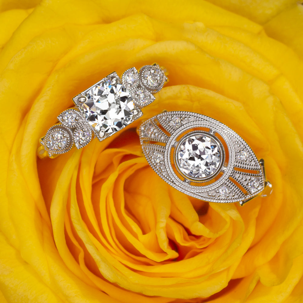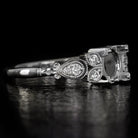VINTAGE STYLE DIAMOND 14K ENGAGEMENT RING SETTING ART DECO ROUND CUSHION 6.5mm