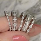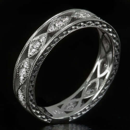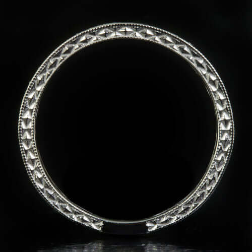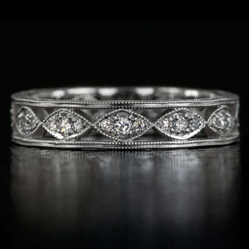 VINTAGE STYLE DIAMOND WEDDING BAND STACKING RING ENGRAVED 14K W GOLD ETERNITY