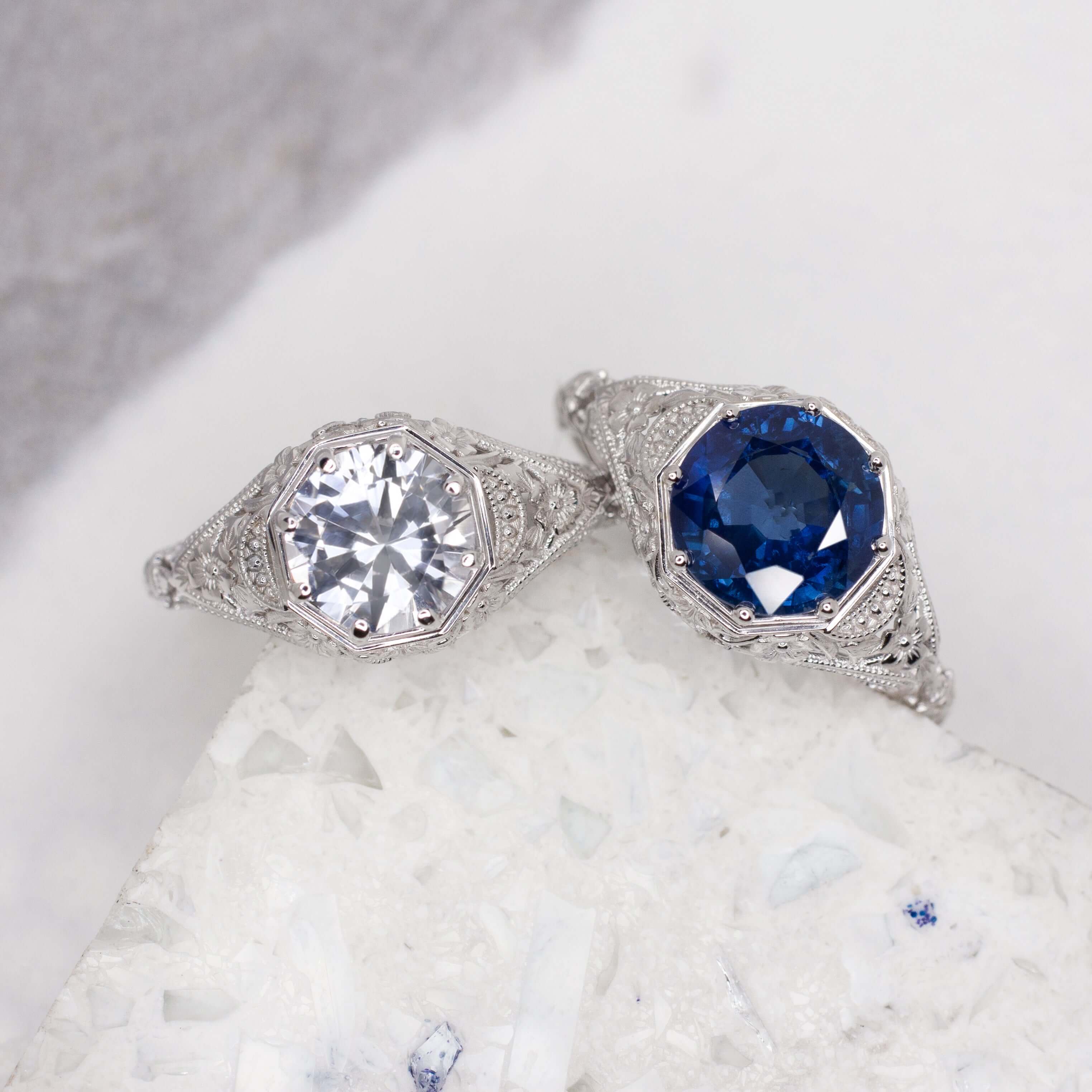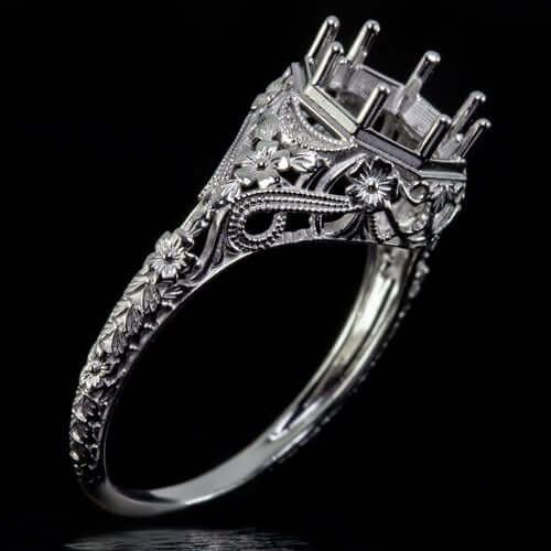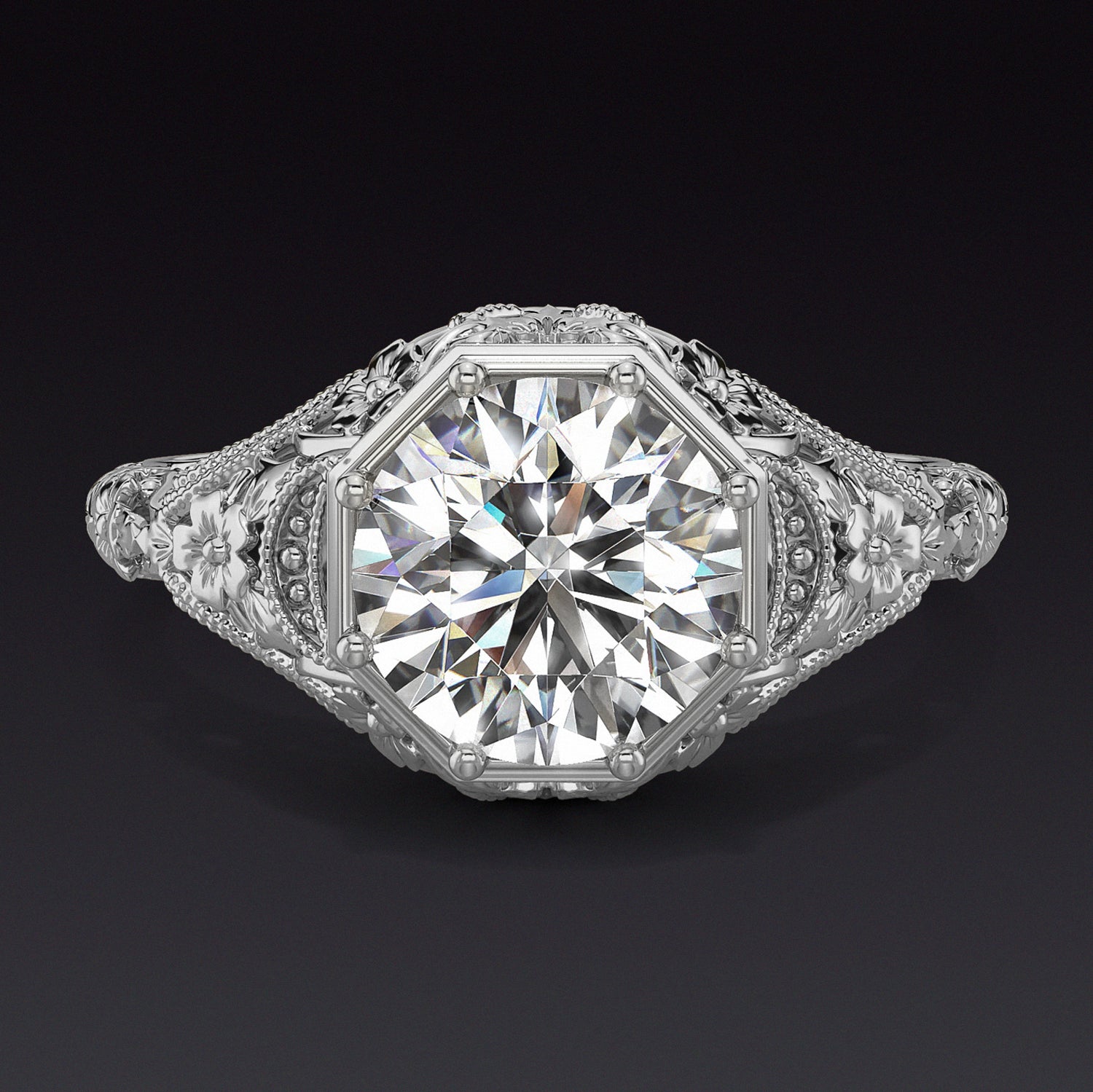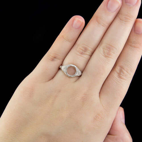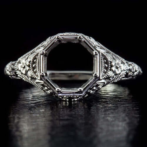 VINTAGE STYLE ENGAGEMENT RING 8mm 2ct ROUND SETTING 14K WHITE GOLD FLORAL MOUNT