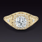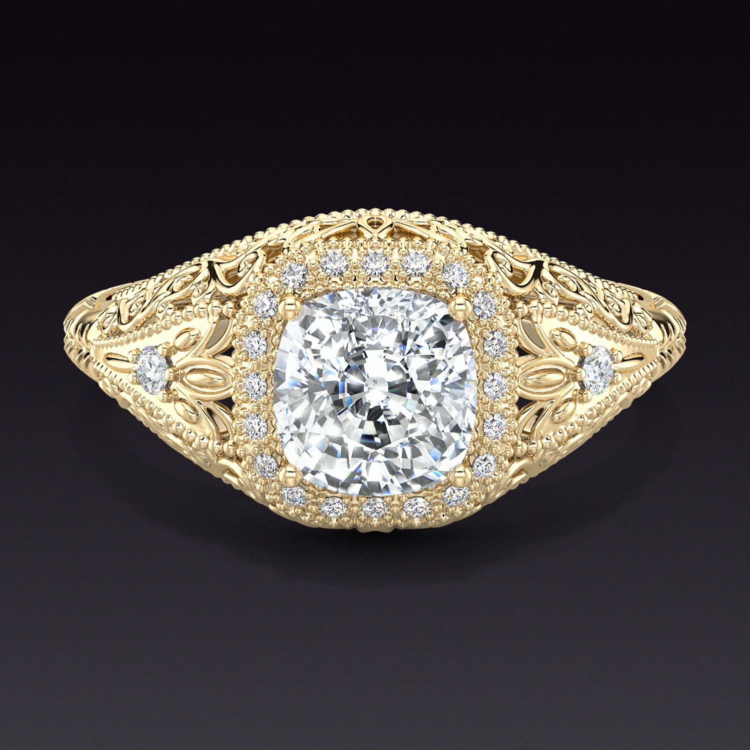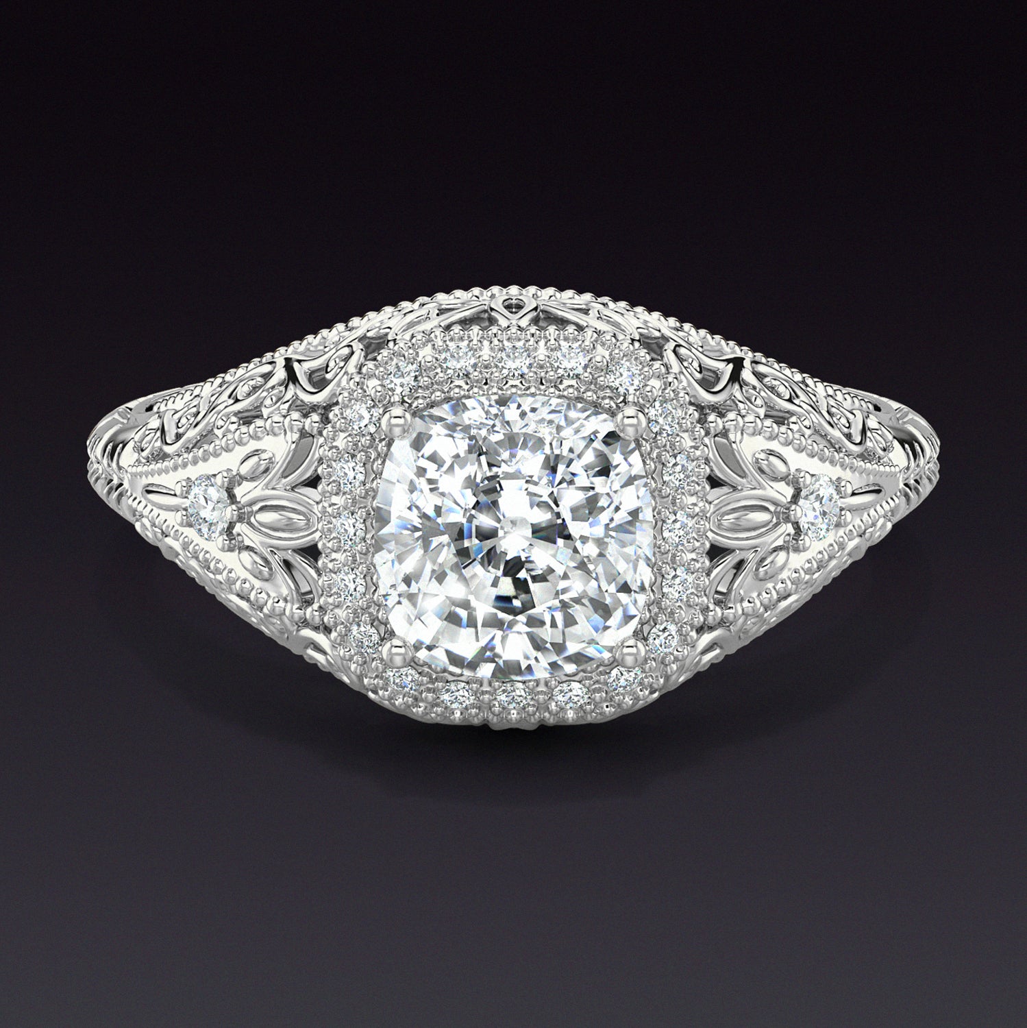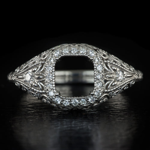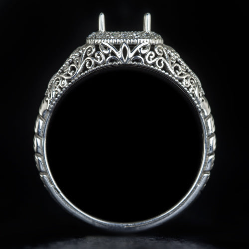 VINTAGE STYLE ENGAGEMENT SEMI MOUNT DIAMOND CUSHION ROUND FILIGREE SETTING RING