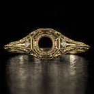 VINTAGE STYLE SEMI-MOUNT RING SETTING DIAMOND 14k YELLOW GOLD ROUND FILIGREE